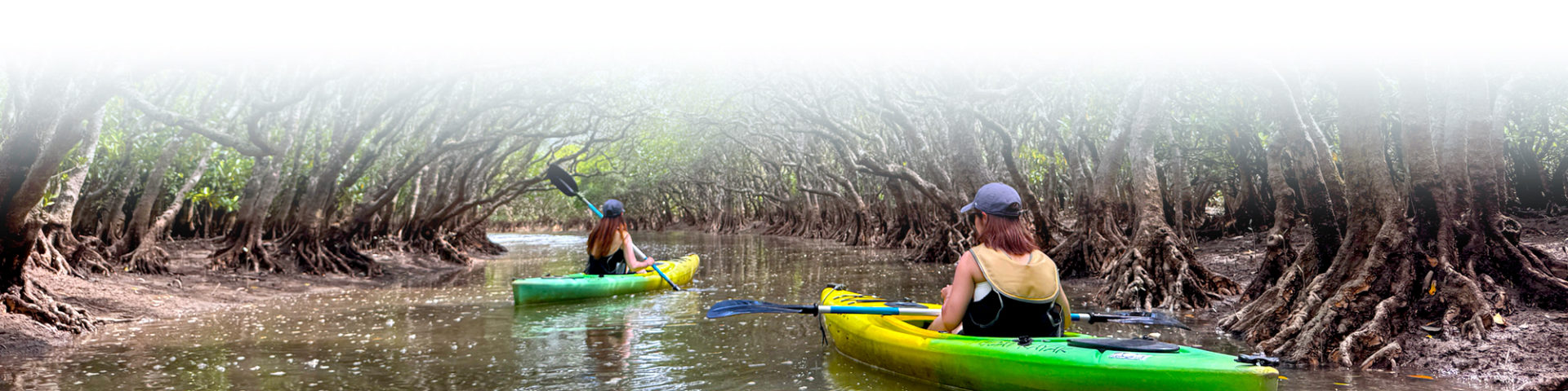 マングローブ林の美しいトンネルやジャングルのような狭い水路にも入っていきます11:30カヤック終了- トイレ休憩